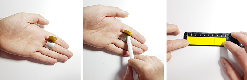 - Messen Sie Ihren Finger am besten am Abend – dann ist er leicht angeschwollen