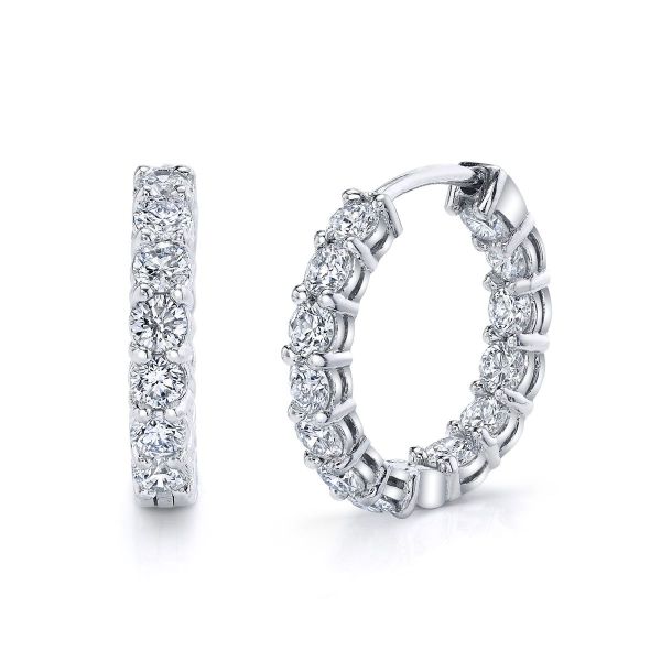 Elevate your style with these elegant hoop earrings. Featuring diamonds pavé-set on the outer surface, crafted in 14K yellow gold with secure hinged closures. Diameter: 25mm.